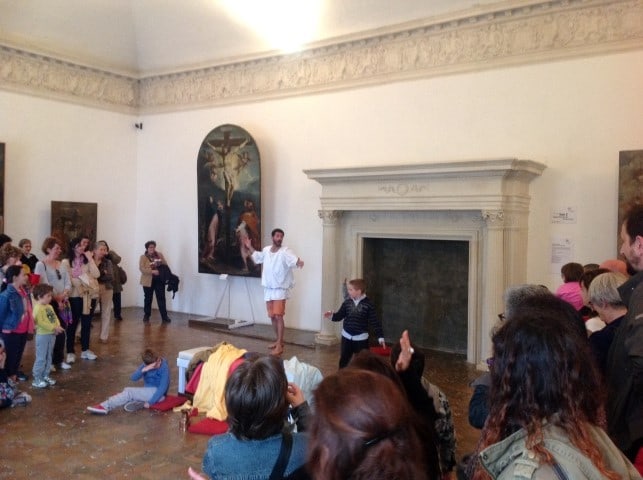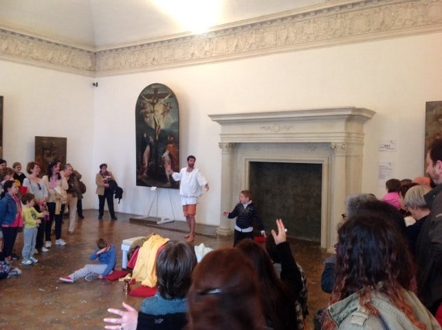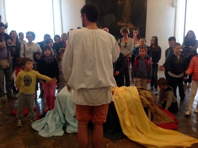 L’11 maggio, presso il Palazzo Ducale di Urbino, ha avuto luogo una giornata molto divertente e un po’ particolare: le opere pittoriche di Federico Barocci si sono animate. Come? Grazie alla bravura e fantasia di Andrea Caimmi, attore e regista marchigiano che per l’occasione ha ideato un percorso curioso e originale per far conoscere ai bambini l’estro di Federico Barocci. Dai sotterranei del Palazzo rinascimentale abitato da Federico da Montefeltro, fino alle stanze della Pinacoteca Nazionale, Caimmi ha coinvolto i bambini in un’avventura “pittorica-teatrale”, rendendoli protagonisti dei quadri barocciani, finalmente visti da un’altra prospettiva.
