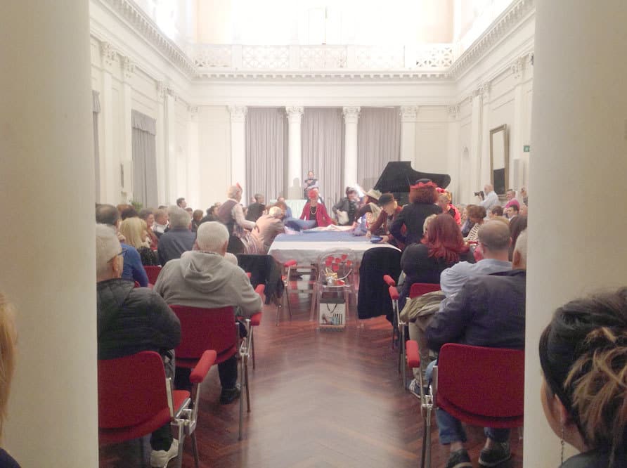 Così Andrea Caimmi ha descritto l’esito laboratoriale, una festa a cui il pubblico ha preso felicemente parte.
