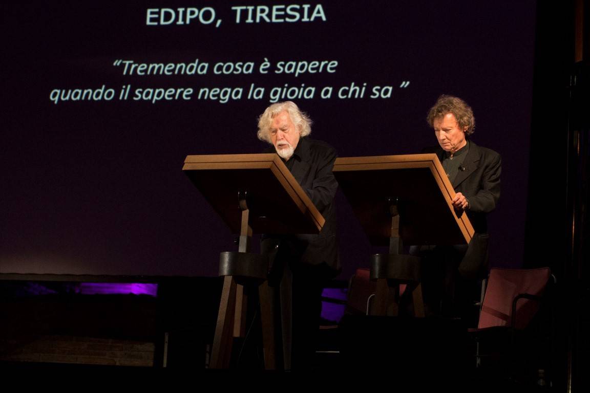 Pubblichiamo l’intervista rivolta a Glauco Mauri  che, accompagnato da Roberto Sturno ha offerto una emozionante e intensa lettura di brani tratti da Edipo Re e Edipo a Colono di Sofocle, La morte della Plizia di Friedrich Dürrenmatt, Edipo di Seneca, La guerra del Peloponneso di Tucidide (libro II), La macchina infernale di Jean Cocteau. Ad arricchire e integrare i momenti drammaturgici, gli interventi musicali a cura di Giovanni Zappalorto, eseguiti dal vivo dallo stesso Zappalorto alla tastiera e da Francesca Salandri al flauto. Andrea Baracco ha curato il coordinamento fra parole e musiche.